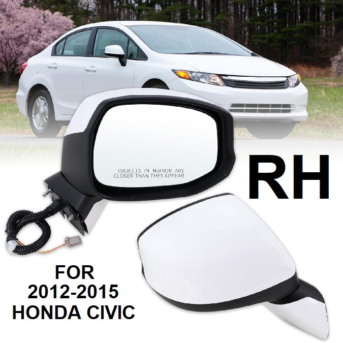 Lqito Right Passenger Side Mirror With Manual Folding Power Glass Non-Heated - Compatible With 2012-2015 Honda CIVIC - WHITE