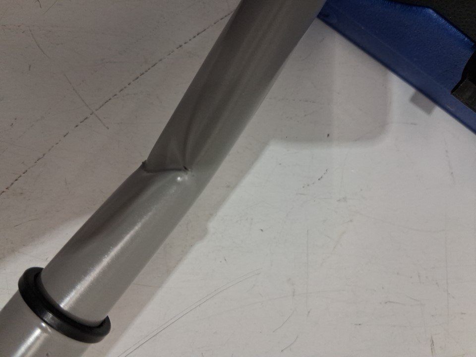 the pole does have a bend in it. possibly reinforced, straightened or simply change the handle to a broom handle