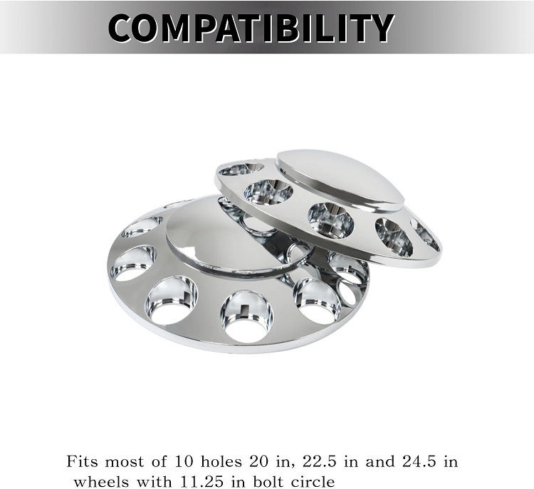 2PK Labwork Semi-truck Front Wheel Covers with plastic lug nut covers - silver chrome