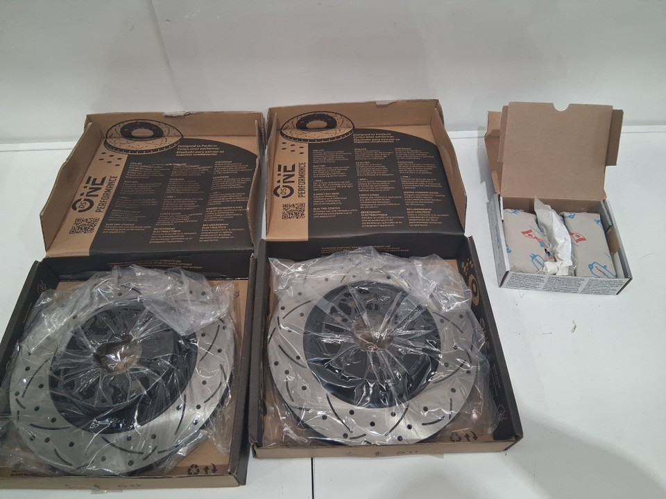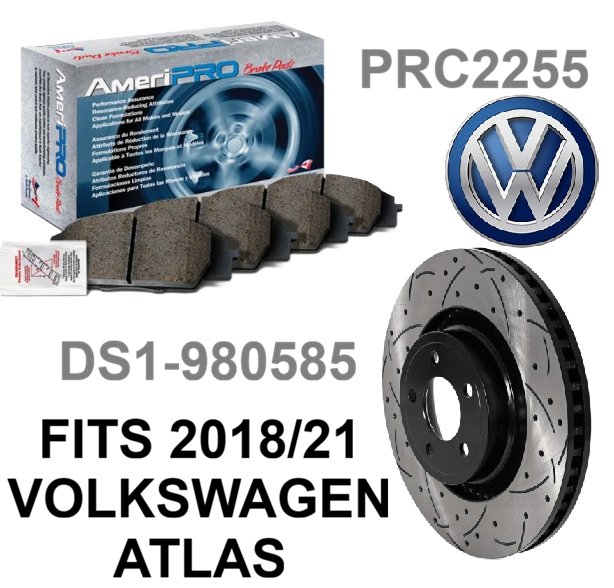 2PK one performance Rear Drilled and Slotted Brake rotor and ameripro Ceramic Rear Disc Brake Pads - for 2018/21 volkswagen atlas - rotor (model:ds1-980585) - brakes (model:prc2255)