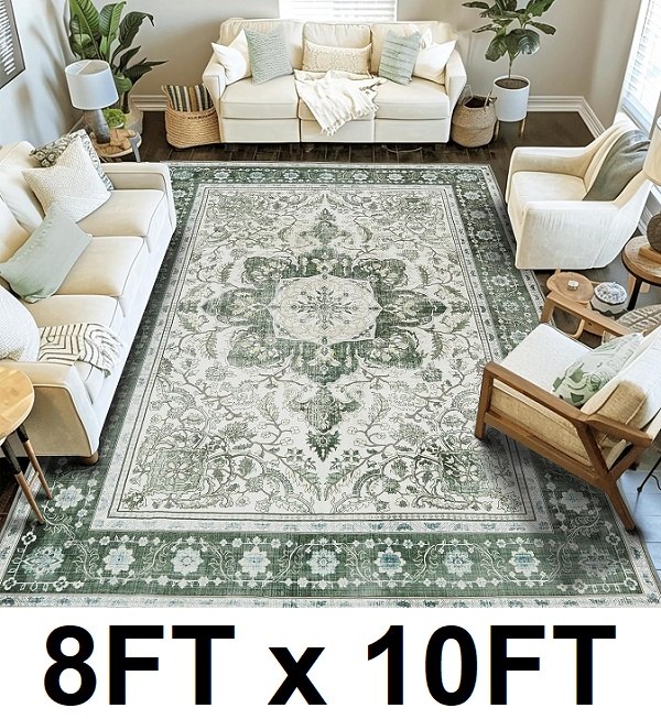 laise Ultra Soft, machine washable Vintage Area Rug - 8FT x 10ft - Green
