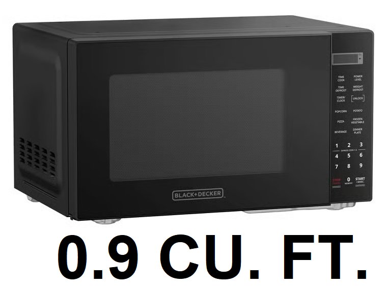 BLACK+DECKER Microwave Oven - 0.9 cu ft - Black (model: em9p022rd-p)