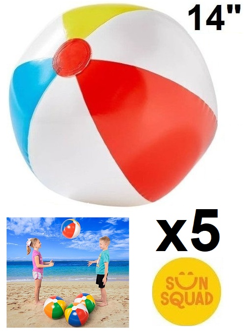 5 sun squad classic inflatable beach ball - 14" diameter - multi-colour