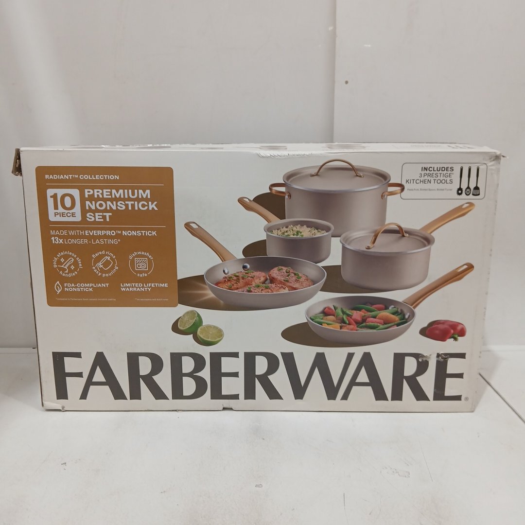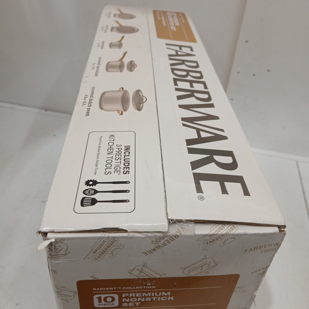 10PC FARBERWARE radiant Nonstick Cookware Set with Prestige Tools - champagne