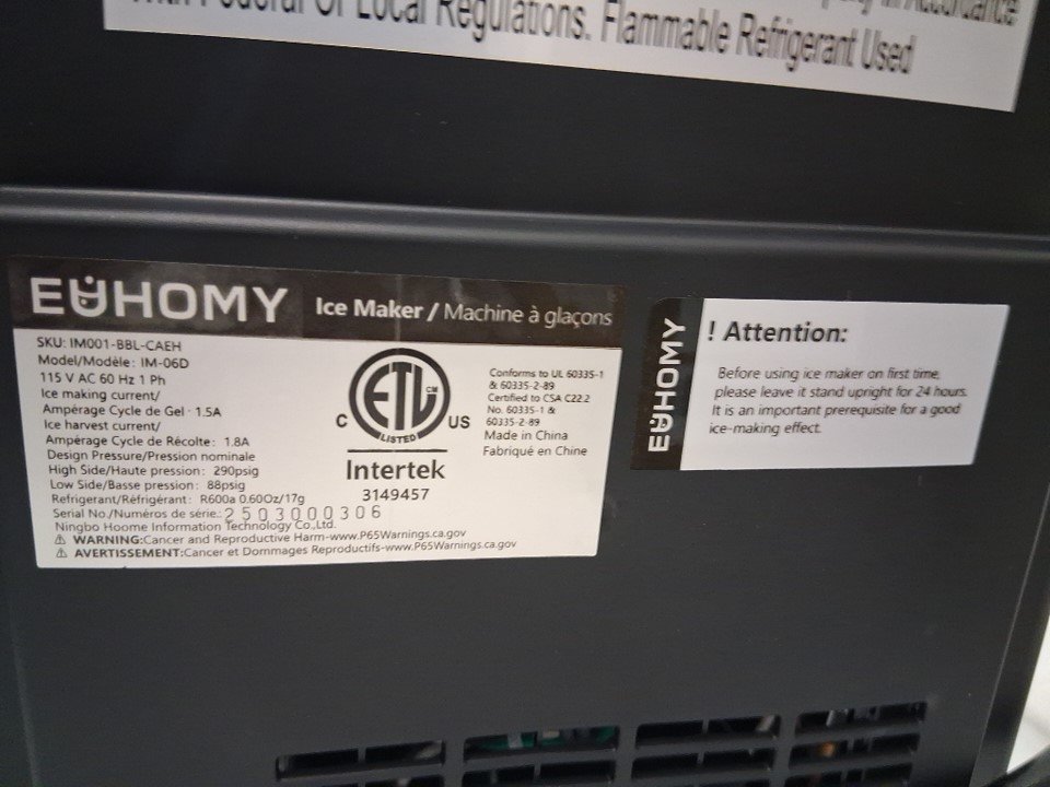 EUHOMY Countertop Ice Maker Machine with Handle, Basket and Scoop - MAKES 26LBS Per Day - BLACK (MODEL: IM-06D)