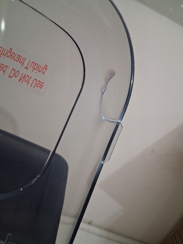 clear lid has a small crack in it, doesn't appear to affect function tested for power