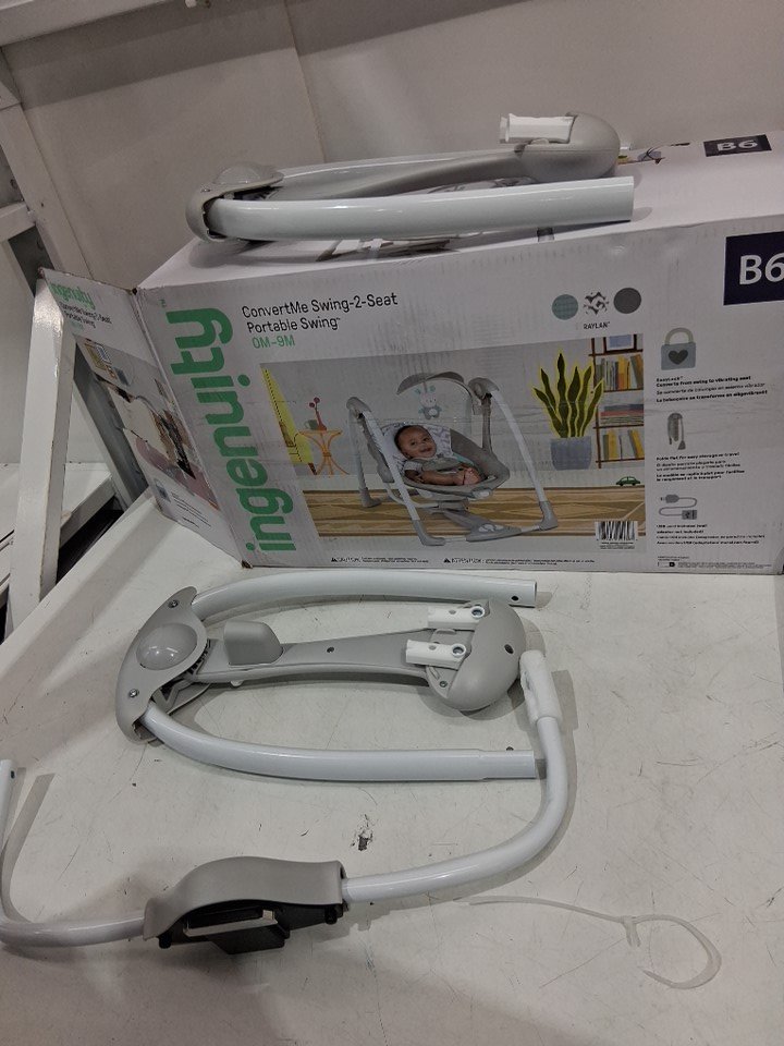 INGENUITY ConvertMe 2-in-1 compact portable plug-in automatic baby swing - 6lbs to 20lbs - grey (model: 12189-es)