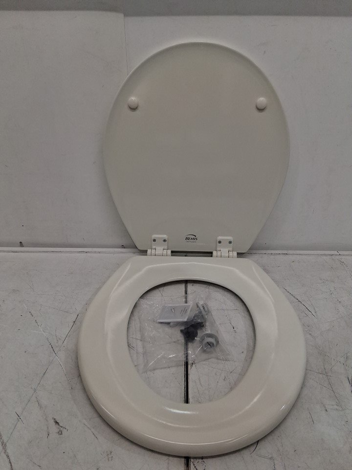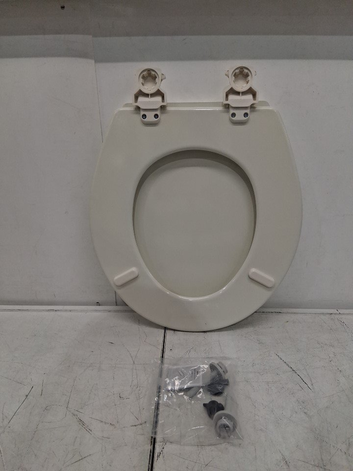 BEMIS MOLDED WOOD ELONGATED TOILET SEAT WITH EASY CLEAN BISCUIT/LINEN (MODEL: 1500EC346)