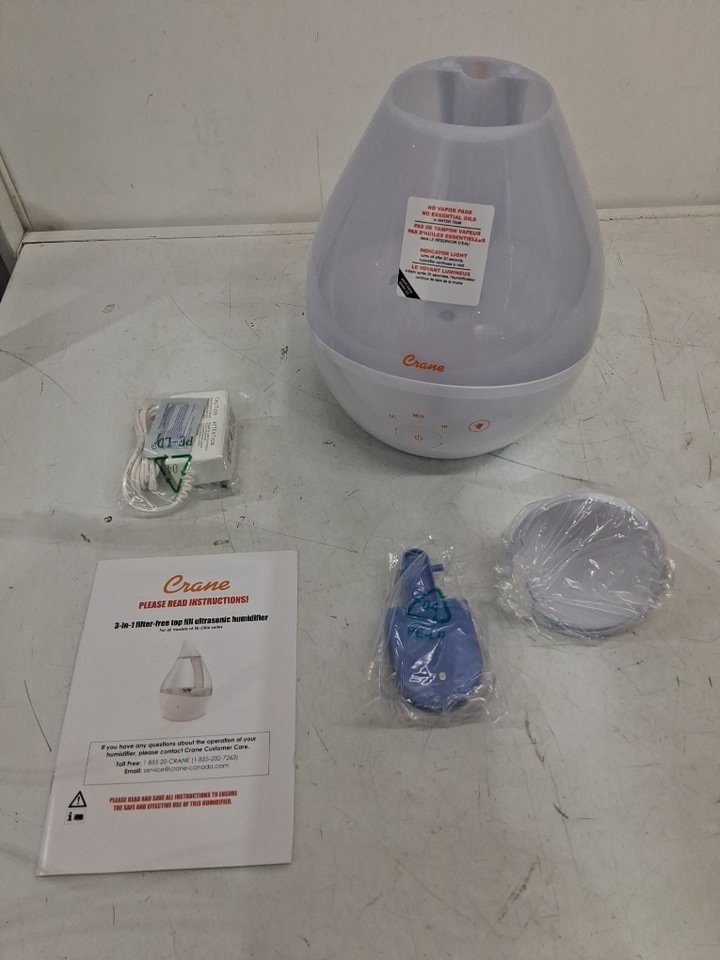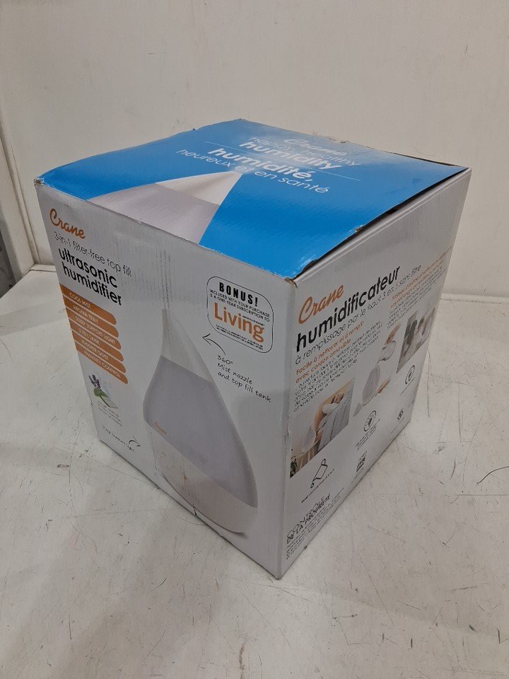 CRANE 3-IN-1 ULTRASONIC COOL MIST TOP FILL HUMIDIFIER WITH 24 HOUR RUN TIME TECHNOLOGY - WHITE (MODEL: ‎EE-5306CW)