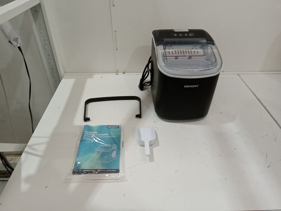 EUHOMY Countertop Ice Maker Machine with Handle, Basket and Scoop - MAKES 26LBS Per Day - BLACK - (MODEL:IM001-Bbl-CAEH)
