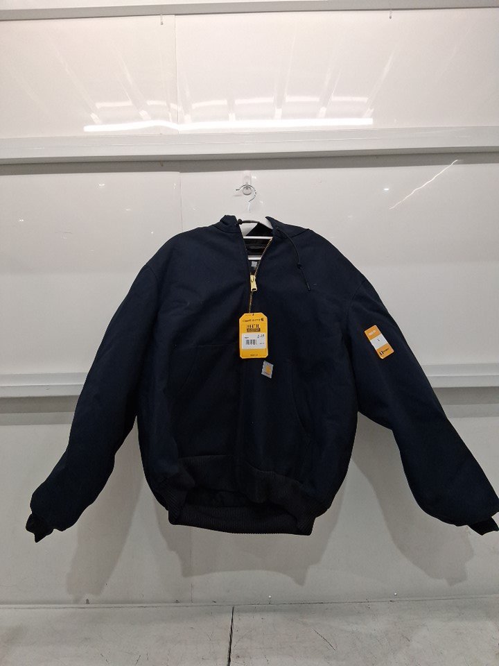 men's carhartt loose fit firm duck insulated flannel lined hooded active jacket - LARGE- navy blue (style: 0j0140-M)