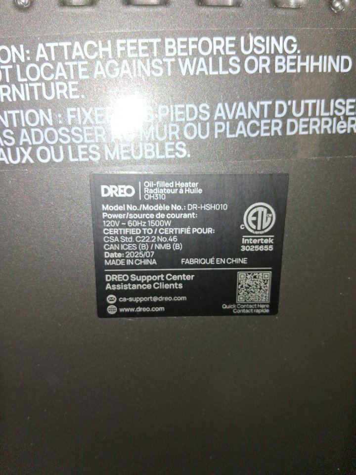 DREO Oil Filled Radiator Electric Radiant Heater with remote - 1500W - black (model: oh310/dr-hsh010)