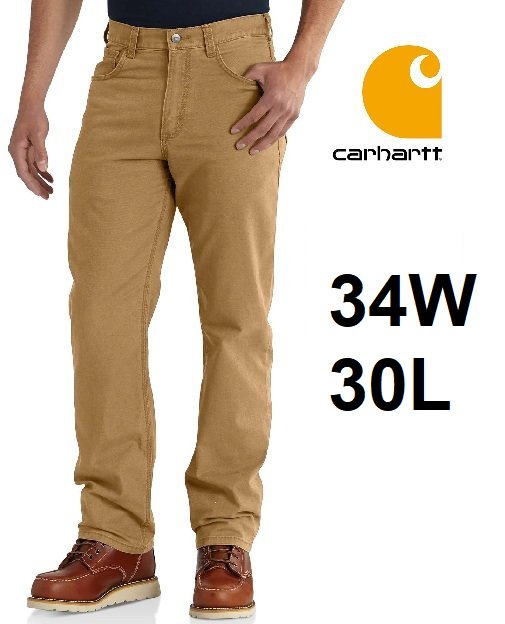 men's carhartt rugged flex relaxed fit canvas 5 pocket work pants - 34w x 30l - Brown (style: BN2517-M