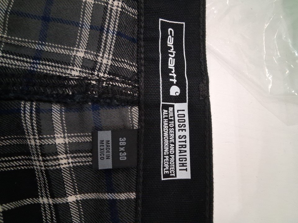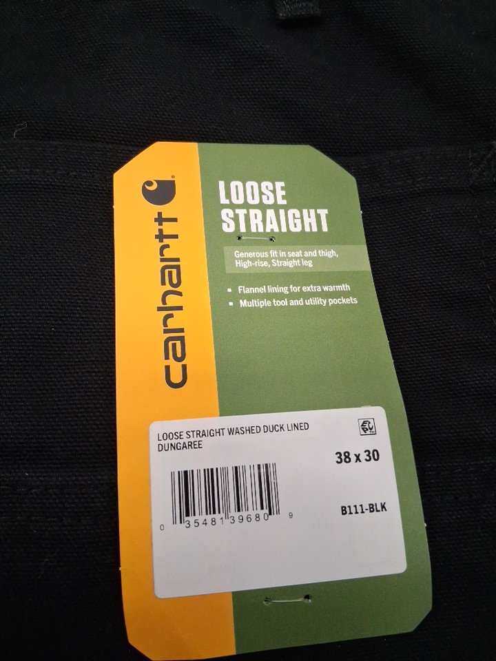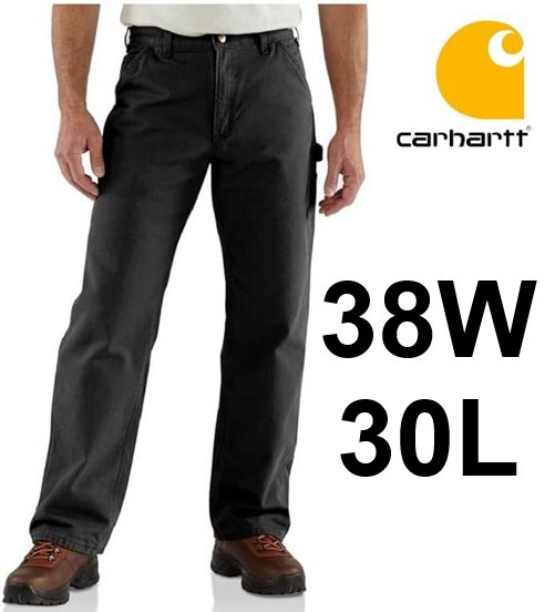 MEN'S CARHARTT LOOSE FIT WASHED DUCK FLANNEL LINED WORK PANTS -38W X 30 L- BLACK- (MODEL:B111-BLK)