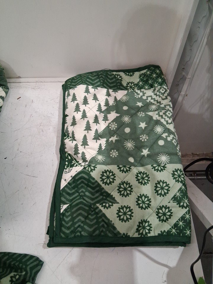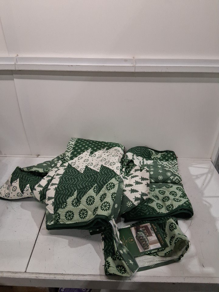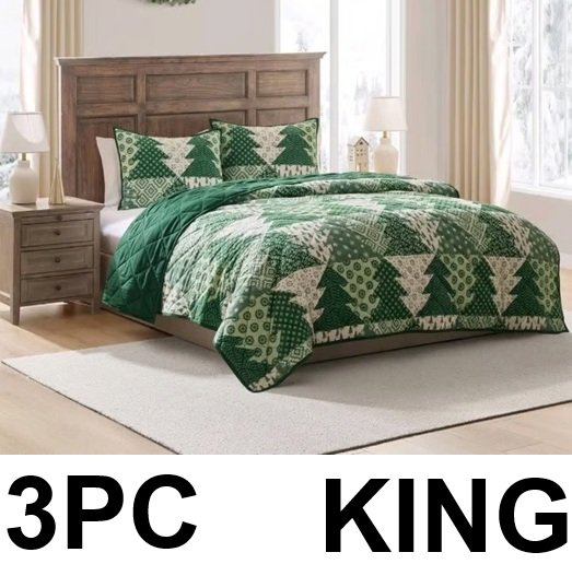 3pc hallmark Flannel Tree Print Quilt and shams - king - green