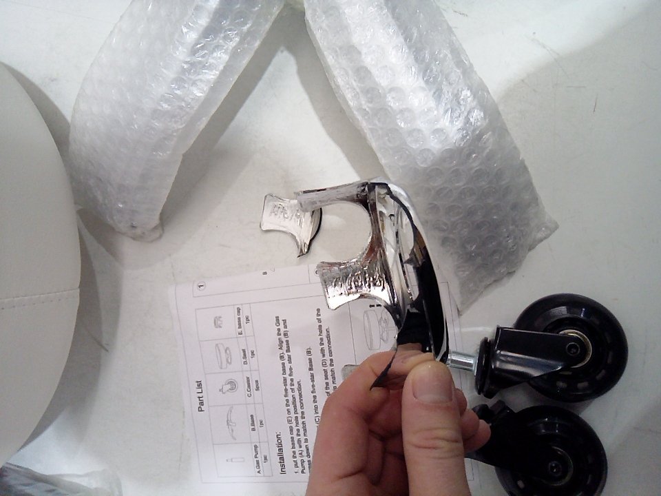 Ours has a slightly different design with a smoother top cushion surface and a slightly different shape. The reflective plastic piece for the bottom has a piece cracked off. (SEE PHOTOS)