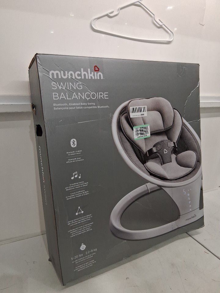 MUNCHKIN lightweight SMART bluetooth baby SWING with natural sway in 5-speed & remote - WHITE/GREY - (MODEL: mkca0788 / 34499001)