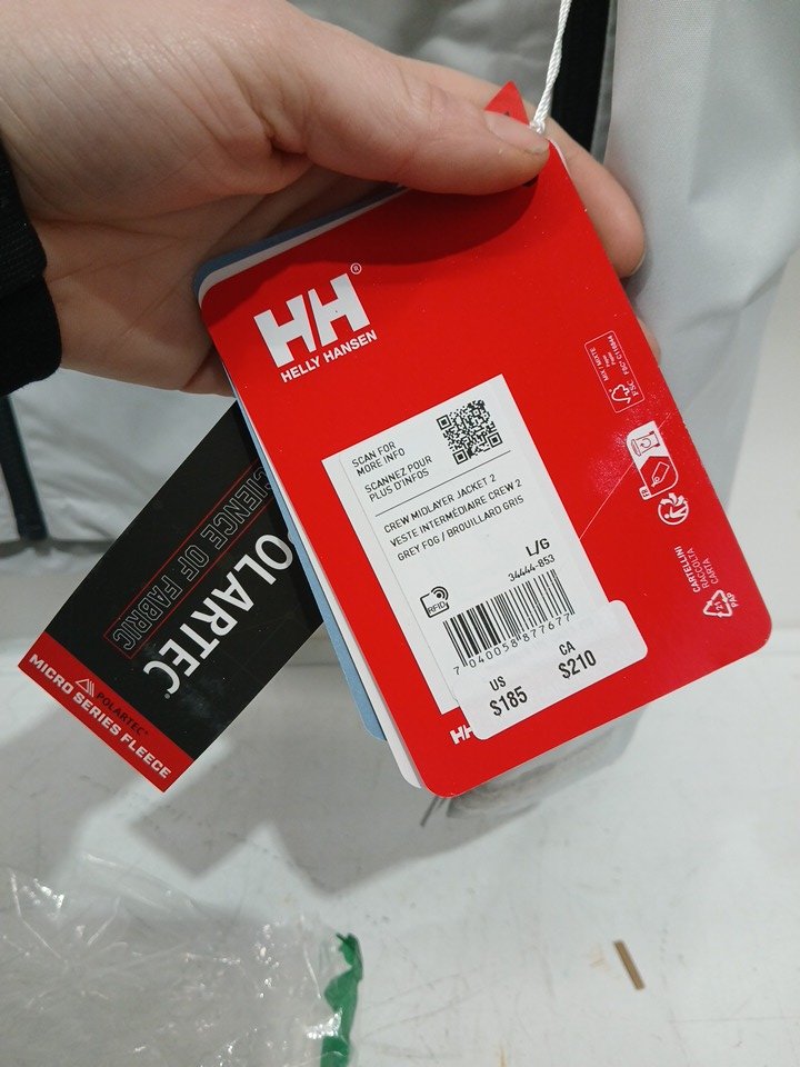 Men's Helly Hansen Crew Hooded Midlayer Jacket - LARGE - FOG GREY (STYLE:34444-853)