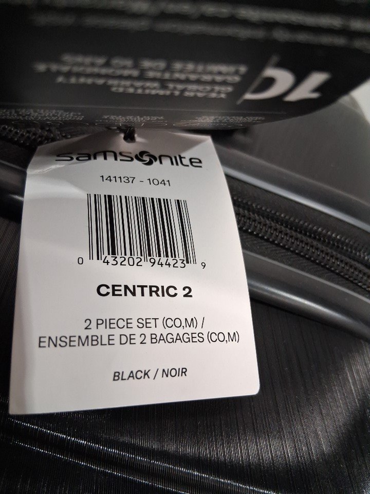 2pc Samsonite Centric 2 luggage/suitcase Set with with tsa lock on 2 and usb charging port on the smallest - black