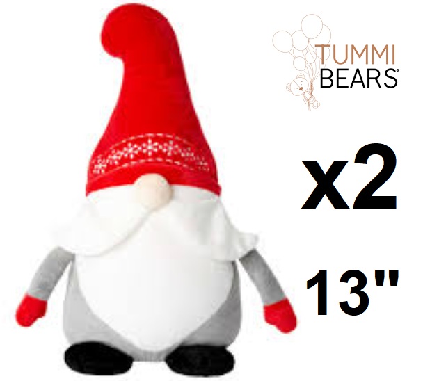 2 Tummi Bears "Santa Gonk" Christmas Gnome Plush Toy - 13" - Red / Grey