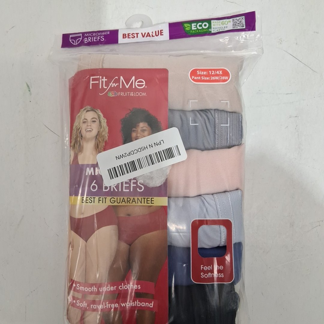 6PK WOMEN'S FRUIT OF THE LOOM FIT FOR ME COMFORT COVERED COTTON BRIEFS - 12/4x - assorted colors