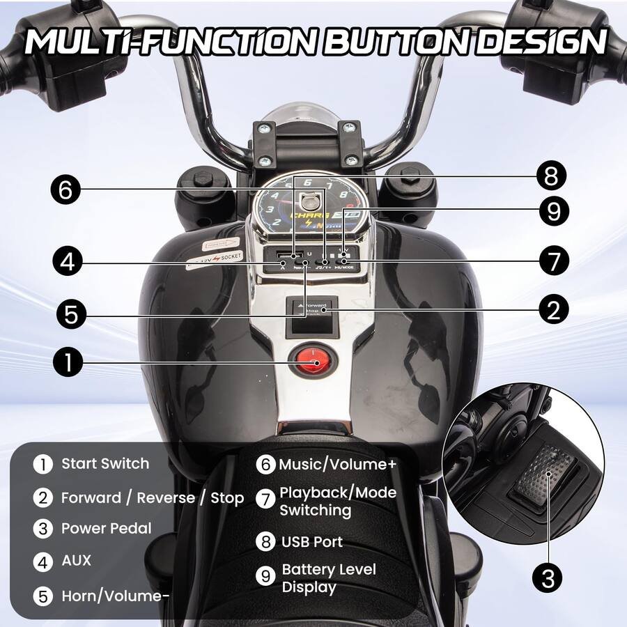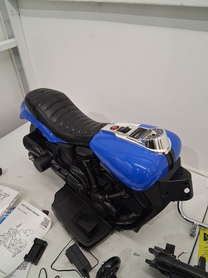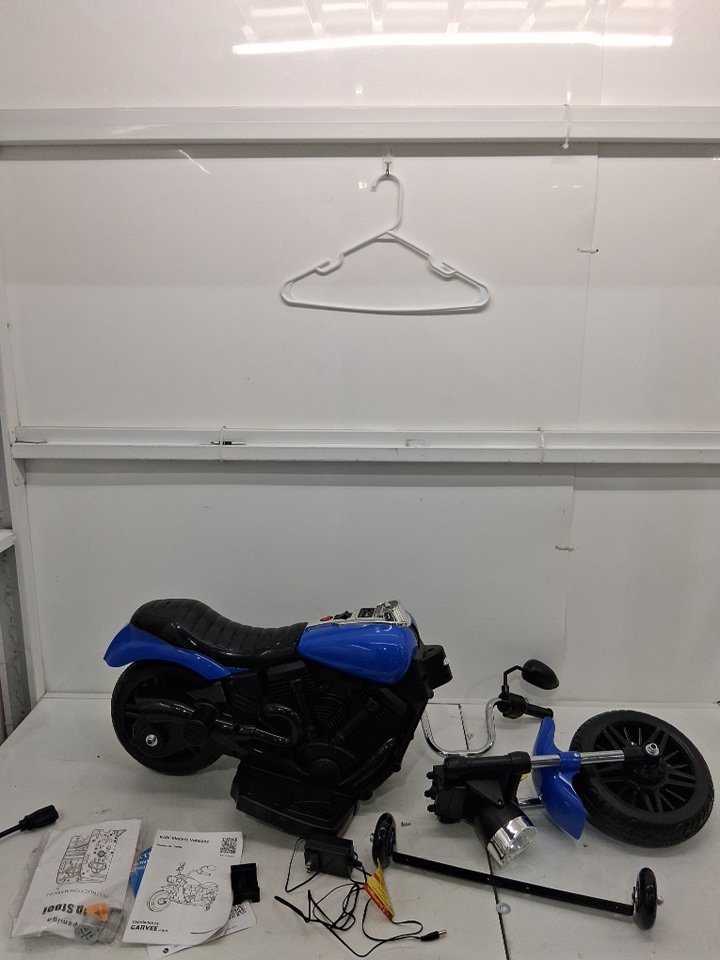 Kids GARVEE Electric 3-Wheel Ride On Motorcycle wITH Training Wheels - 12V - BLUE/BLACK -(MODEL: ptg_338d)