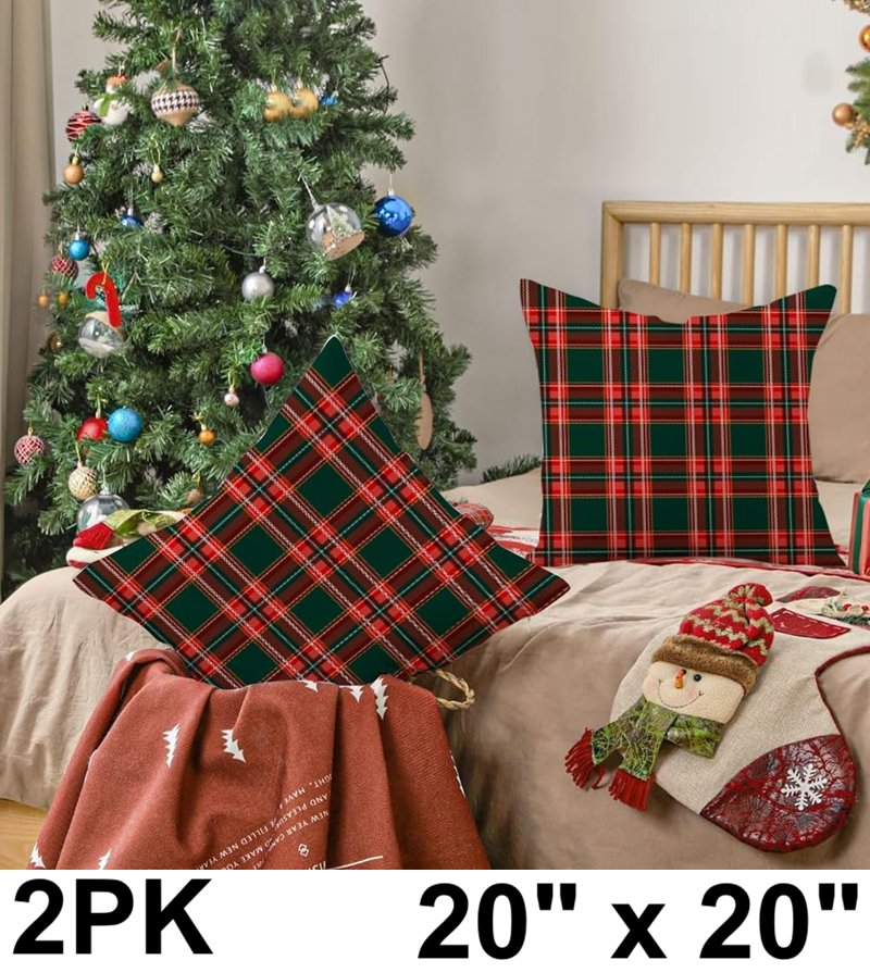Rabusofa Christmas Plaid Pillow Covers - 20" x 20" - Red Green
