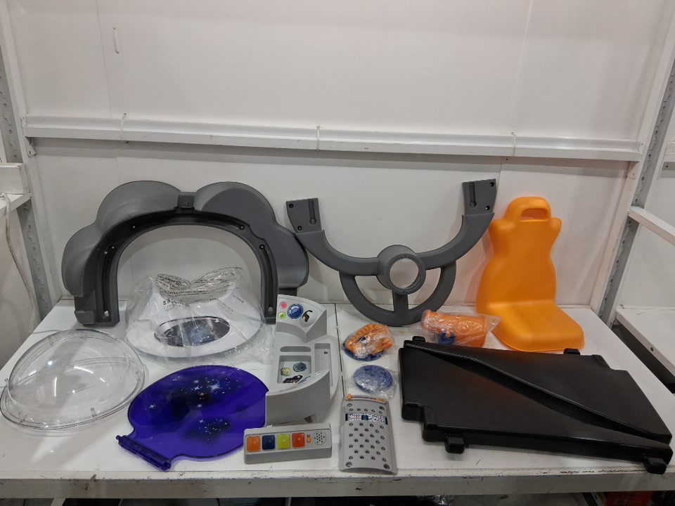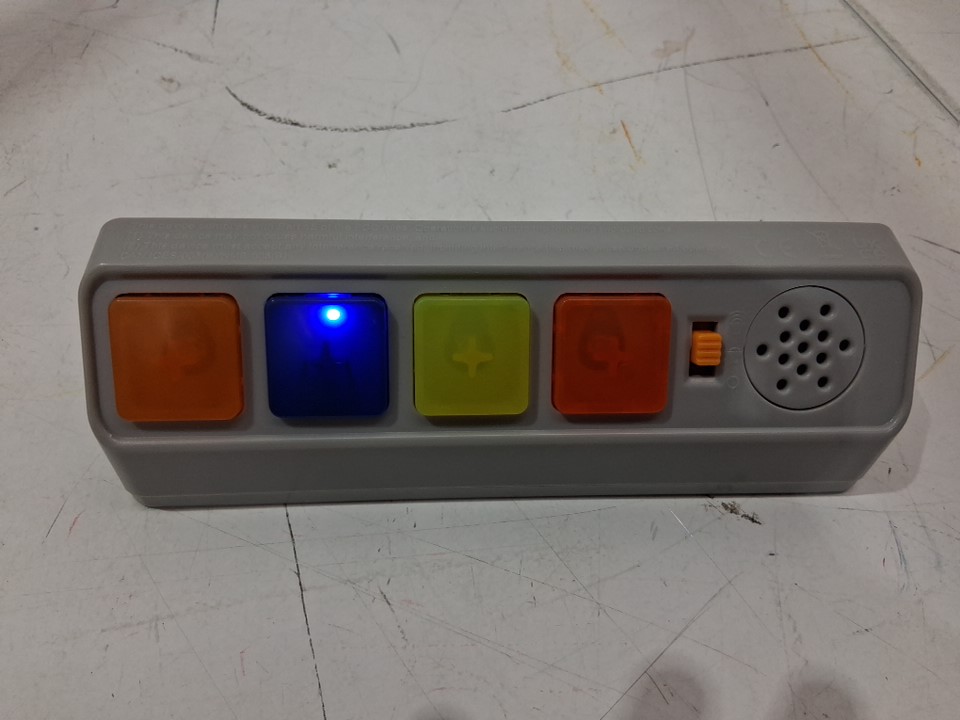 Stickers are already on the pieces, and there are a few spots/dirt markings on some pieces indicating prior use. See photos. Tested button module for power and sound.