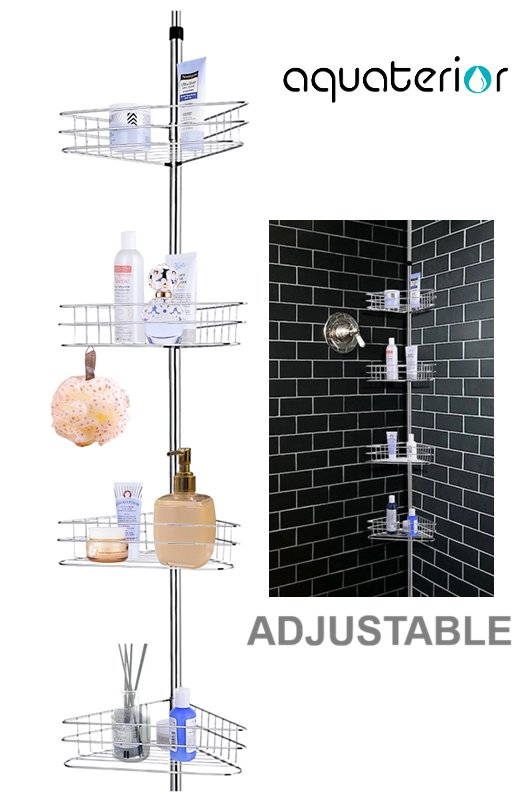 aquaterior 4 tier chrome adjustable tension pole shower caddy-107 1/16" -114 15/16"- chrome