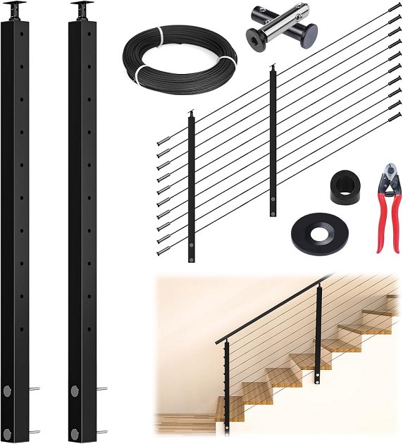 muzata side mount stair posts cable railing kit - 36" - black (model: rwf1 ba4s)