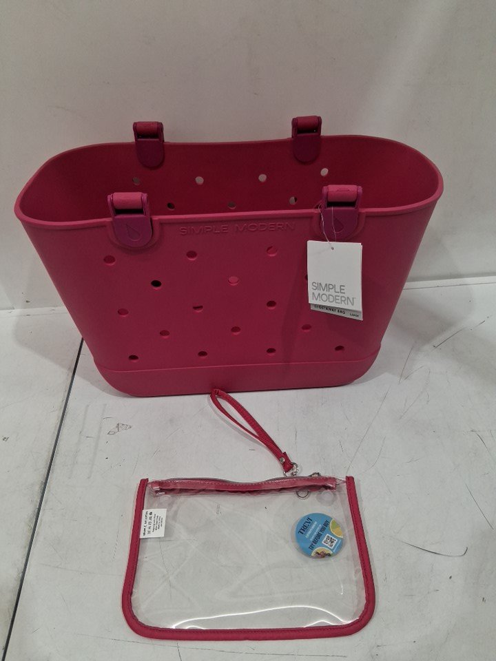 SIMPLE MODERN GETAWAY BAG COLLECTION WATERPROOF BEACH BAG/RUBBER TOTE - LARGE - malibu/PINK