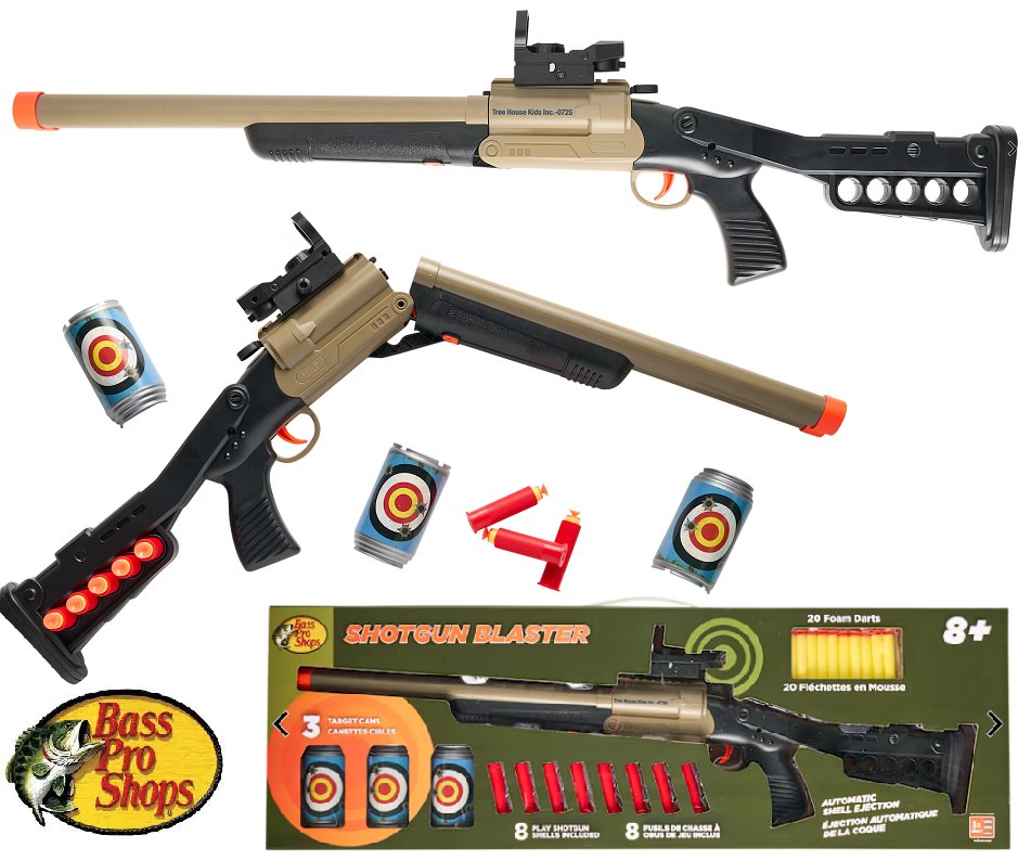 BPS double barrel kids toy shotgun dart blaster with targets - sand brown/ black (model: 1107)