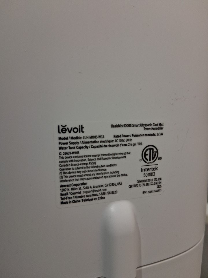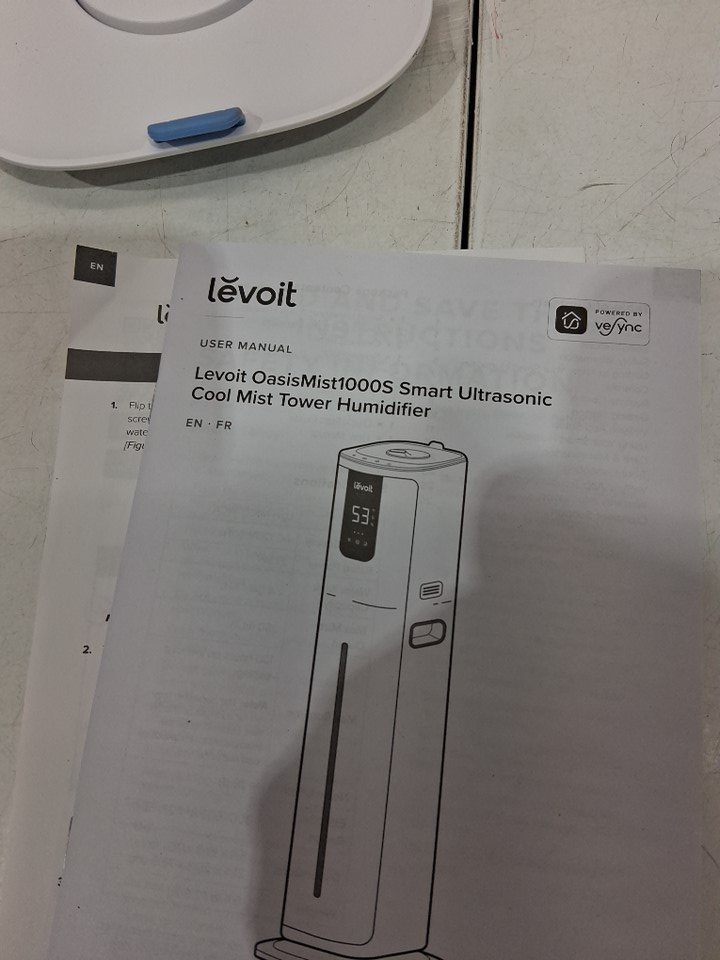 LEVOIT HUMIDIFIER FOR LARGE ROOM SMART COOL MIST - 10" x 8.5" x 28.7" - WHITE (MODEL: ‎LUH-M101S-WCA)
