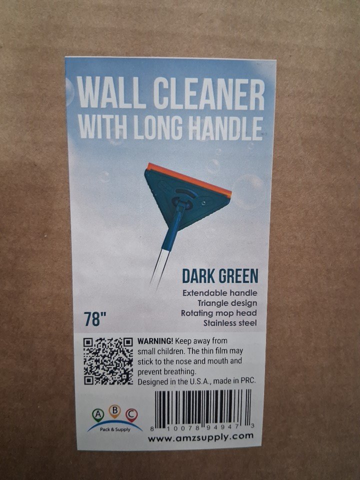 AMZ supply wall cleaner with extendable handle - 31" to 78" - Dark green/silver