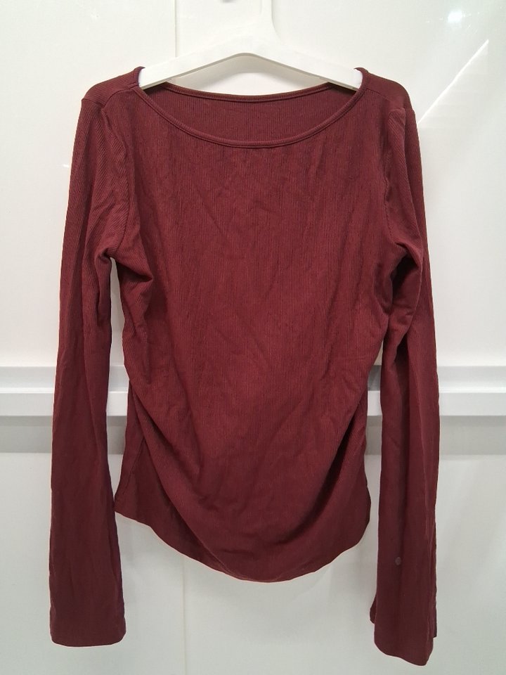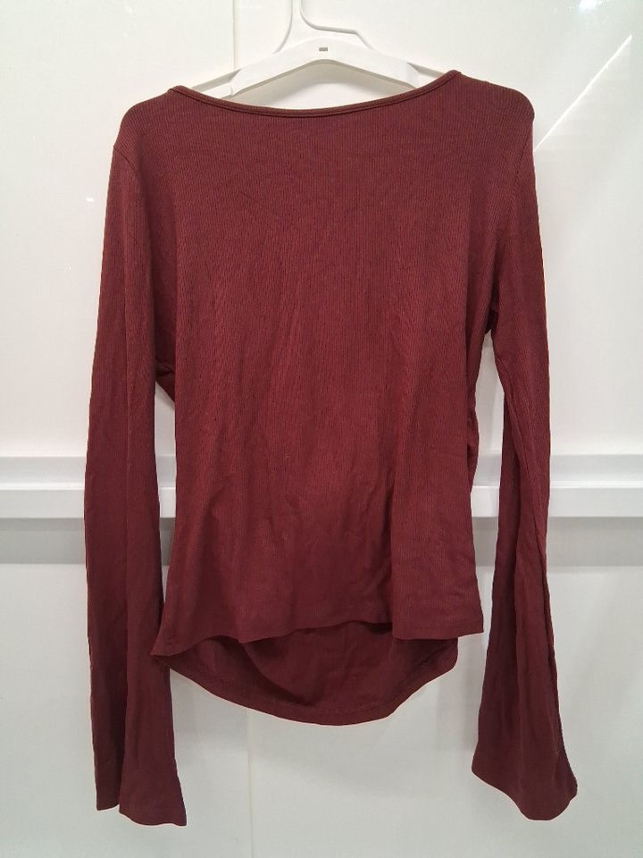 women's long sleeve crewneck ribbed knit shirt with flared cuffs - large - burgundy/purple