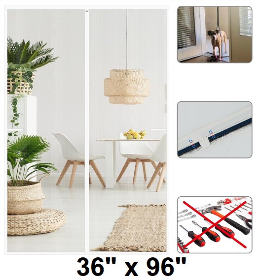 CHIYUNS Heavy Duty, Self Sealing Magnetic Screen Door Mesh - 38" x 97.6 " - FIT DOOR 36" x 96" - white