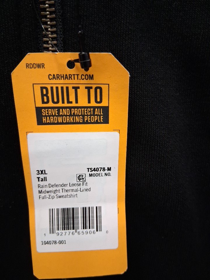 MENS CARHARTT MID-WEIGHT THERMAL LINED RAIN DEFENDER LOOSE FIT full zip SWEATER - 3xl - black (model: Ts4078-M)