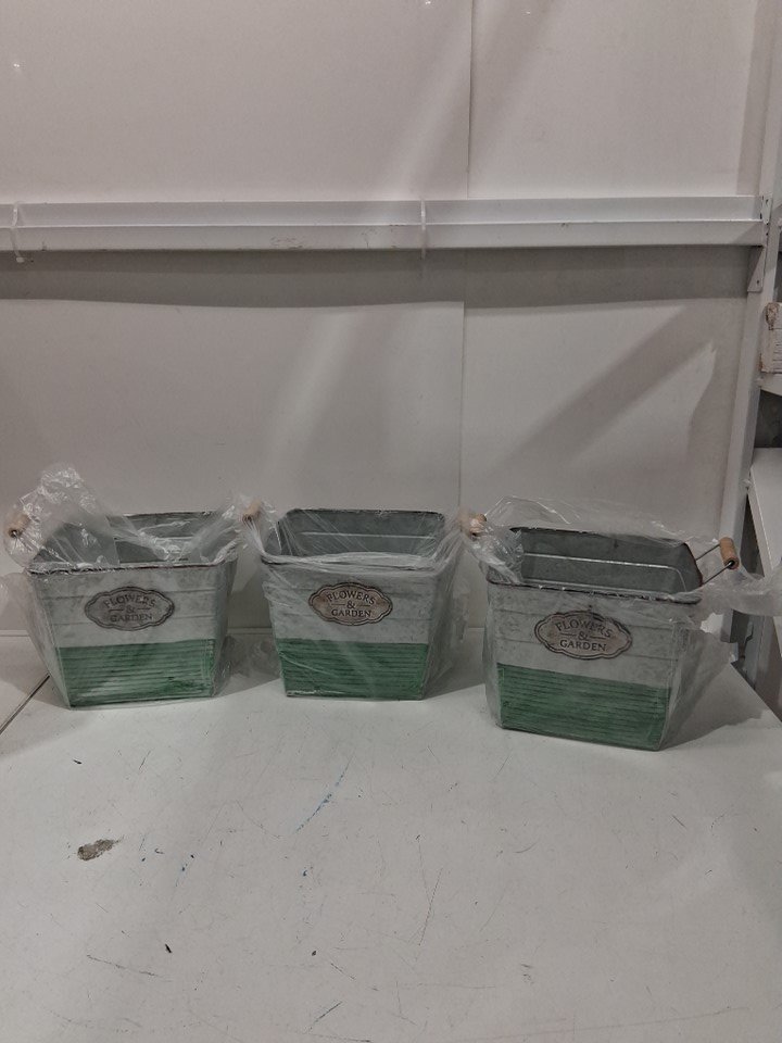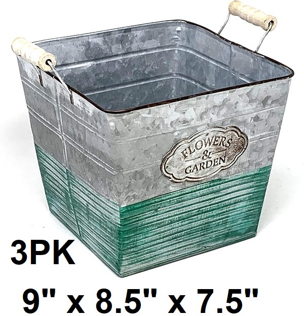 3pk llgala Indoor and Outdoor Galvanized square Planter Pot - 9" x 8.55" x 7.5" - green/silver - (model: HD88304)
