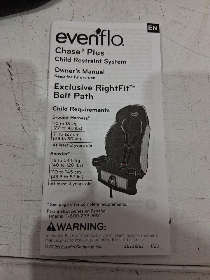 EVENFLO CHASE PLUS 2-IN-1 BOOSTER CAR SEAT FOR KIDS, 5-POINT HARNESS CONVERTS TO HIGH BACK BOOSTER - HURON/BLACK/GREY (MODEL: 30712344C)
