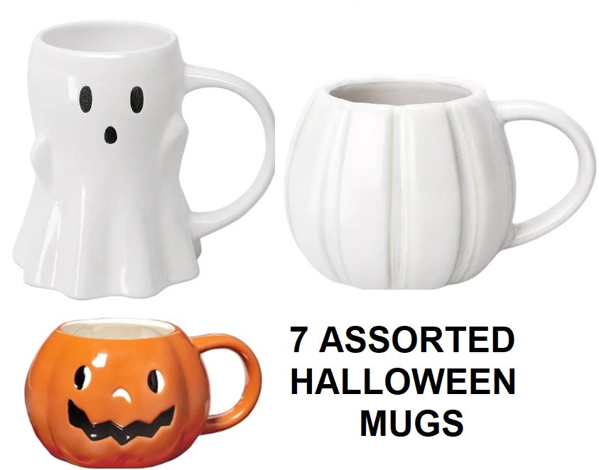7 assorted Halloween mugs - pumpkin/jack-o-lantern & ghost