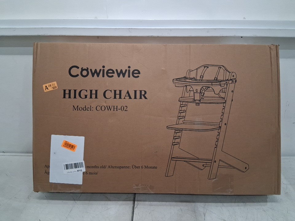 cowiewie 3-tier wooden high chair - 200lbs - gray (model: COWH-02)