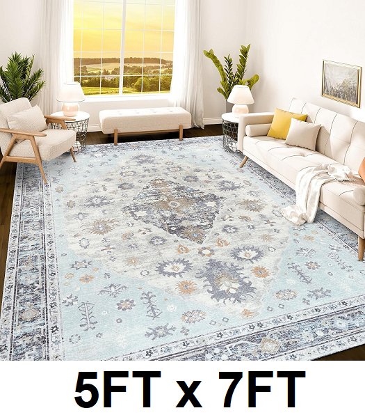 istana MODERN Stain Resistant, Washable, Eco-Friendly RUG - 5ft x 7ft - cream/blue