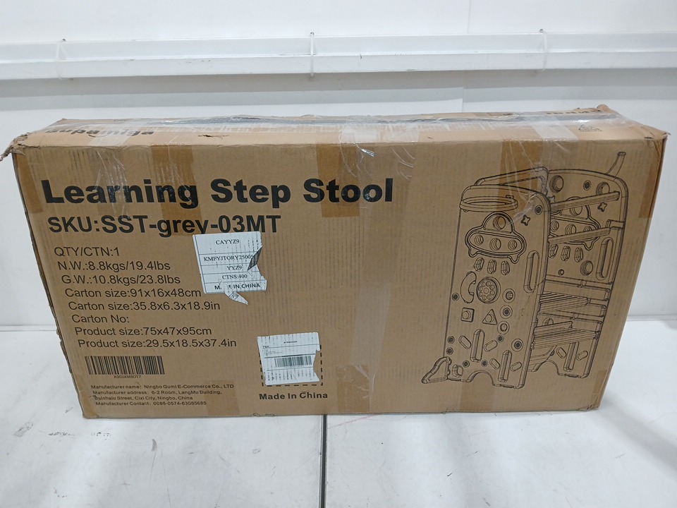 gupamiga Toddler Kitchen Stool Tower Step Stool with White Board - 18.5" x 18.1" x 35.4" - Grey - (Model: SST-grey-03MT)