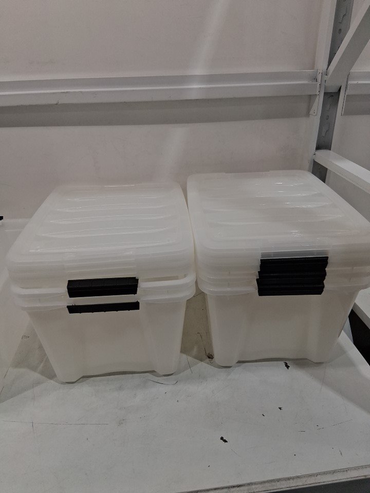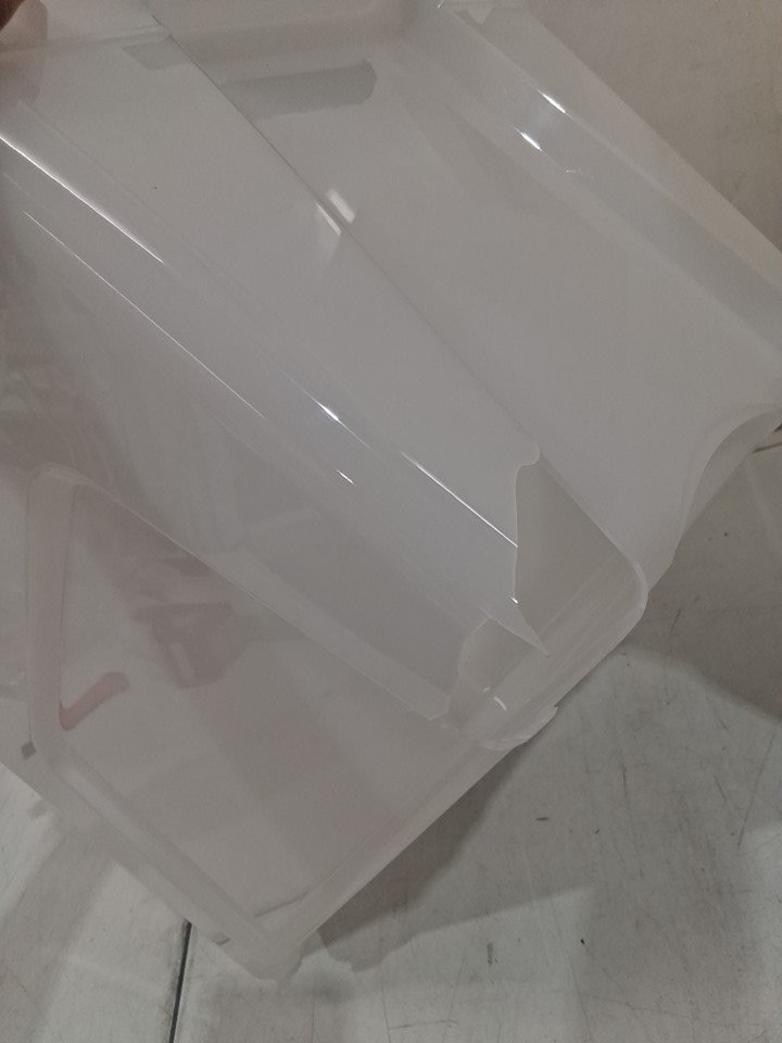 One of the containers has a cracked and broken corner.