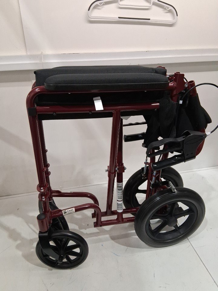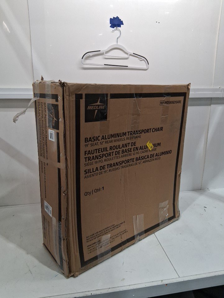 MEDLINE BASIC ALUMINUM TRANSPORT WHEELCHAIR - 19" - 12" REAR WHEELS WITH BRAKES - 300lbs capacity - RED (MODEL: MDS808210ARE)
