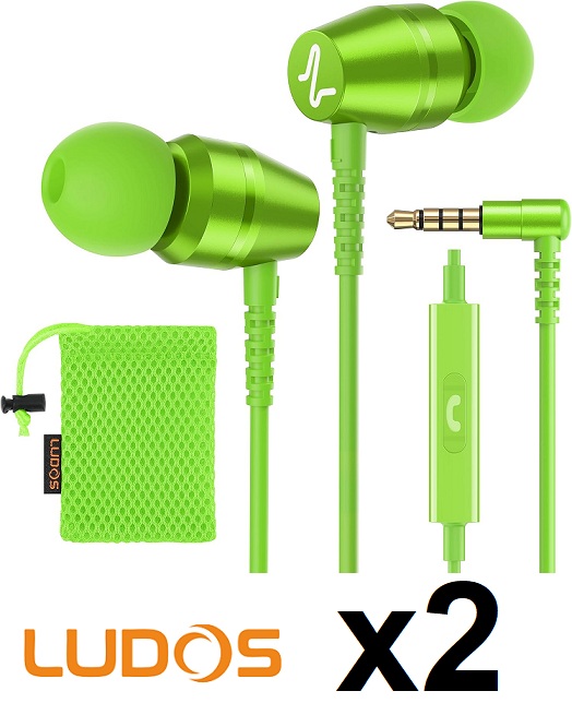 2 Ludos Omnitone Wired in-Ear Headphone Earbuds with microphone - 3.5mm jack - neon green