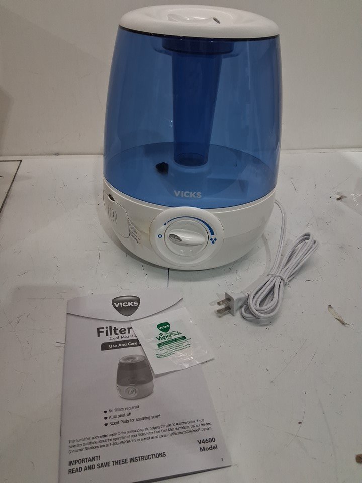 VICKS FILTER-FREE ULTRASONIC COOL MIST HUMIDIFIER WITH VARIABLE OUTPUT CONTROL and AUTO SHUT-OFF - 4.5L - WHITE/blue (MODEL: V4600CANam)