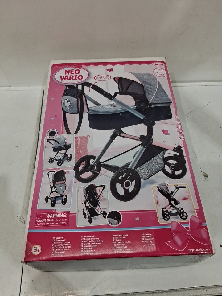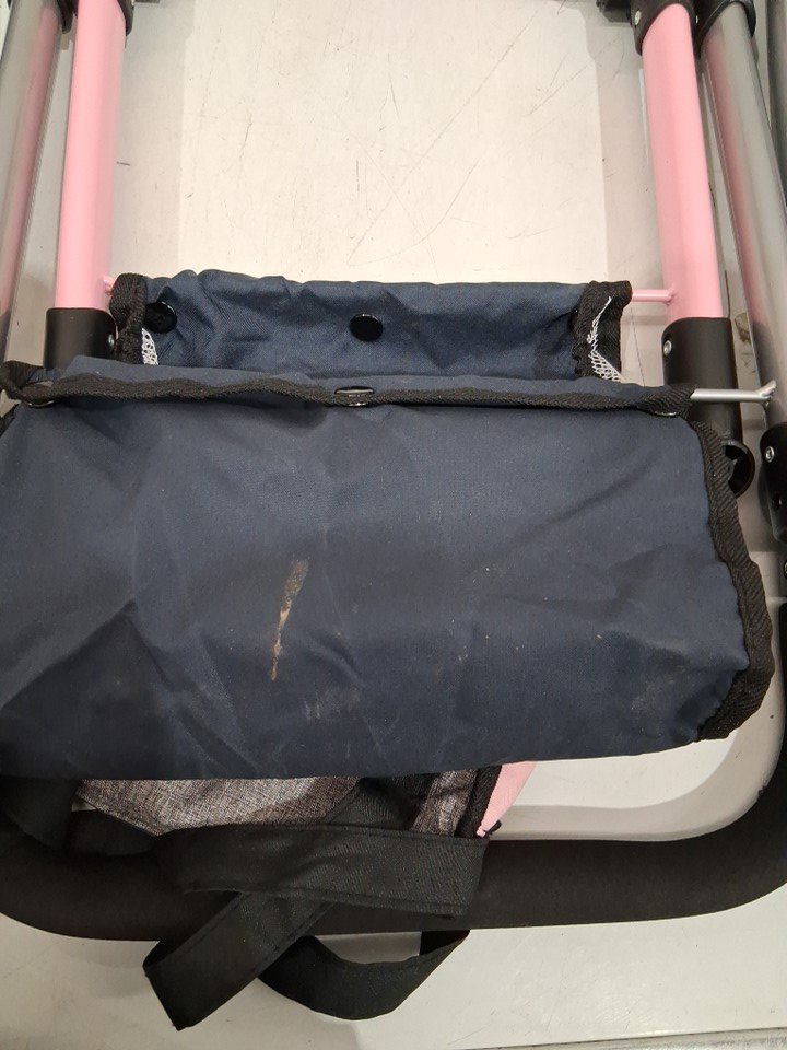 Item shows signs of previous use such as mild dust/dirt on surface of fabric and wheels.