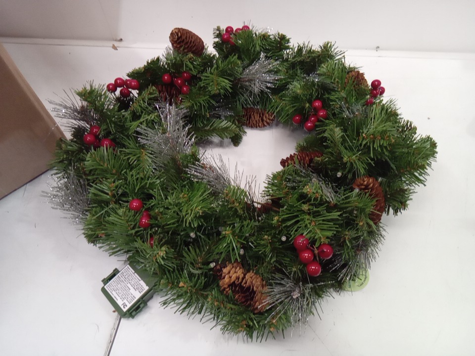 National Tree Company Pre-Lit Crestwood Spruce Artificial Christmas Wreath - 24" - green
