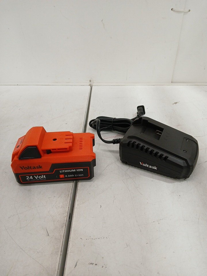 Voltask lithium ion battery with rapid charger for cordless snow shovel and cordless snow blower - 24v - 2.2a - 4.0-ah - orange/black/white (model: BC-24-4)